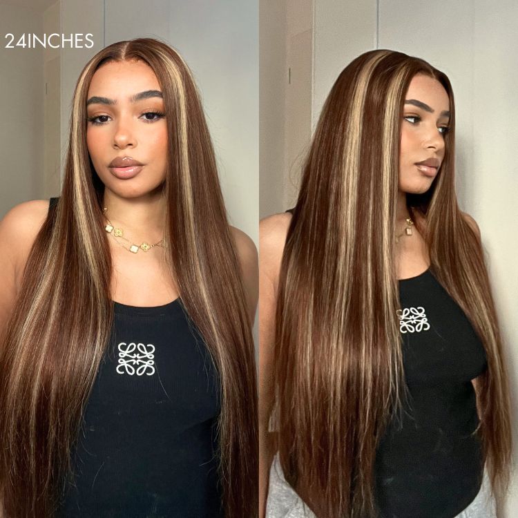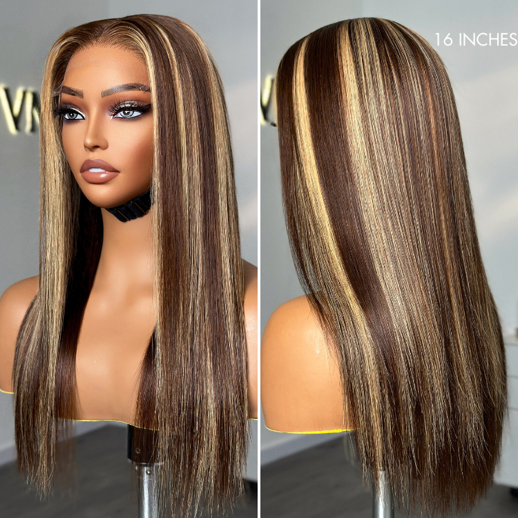 Worth I Honey Blonde Highlight Silky Straight Glueless Undetectable 5x5 Closure Lace Long Wig