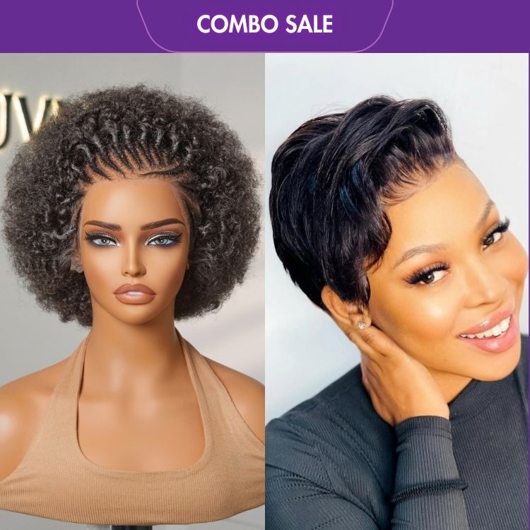 2 For 1 | Super Hot Pixie Cut Glueless HD Lace Wig + 170% Density ReadytoGo Knotless Fulani Braids Natural Afro Glueless 13x4 Frontal Lace Wig