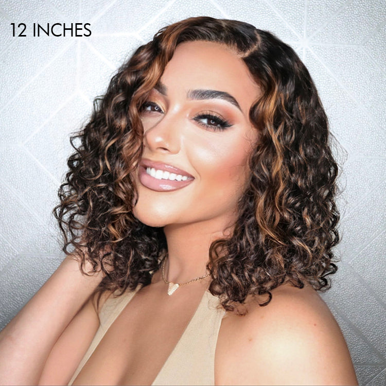 Flash Sale | Casual Blonde Highlights Curly Minimalist HD Lace Glueless C Part Short Wig 100% Human Hair