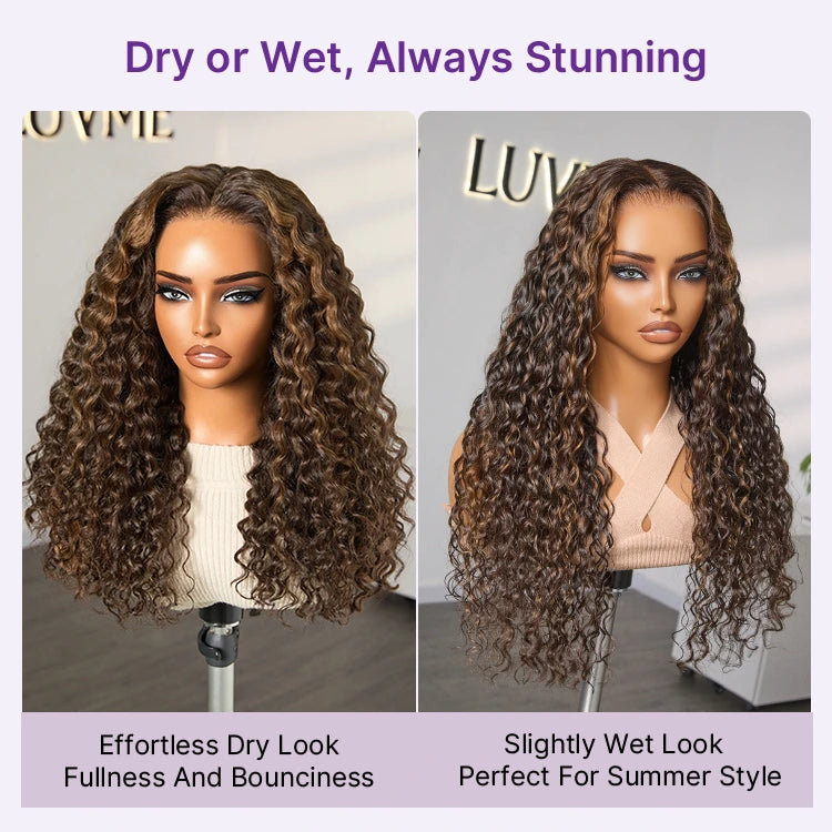 [phindilegwala_official]'s Special Link VolumeMAX™ 200% Density Brown Highlights Flexi-Fit Invisi Drawstring Cap Glueless 360 Lace Super Natural Hairline Water Wave Free Part 100% Human Hair Wig