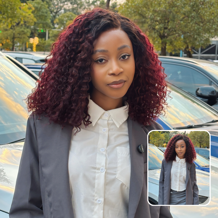 VolumeMAX™ 200% Density ReadytoGo Beginner Friendly Ombre Burgundy Glueless 5x5 Closure Lace HD Lace 14 inches Curly Wig