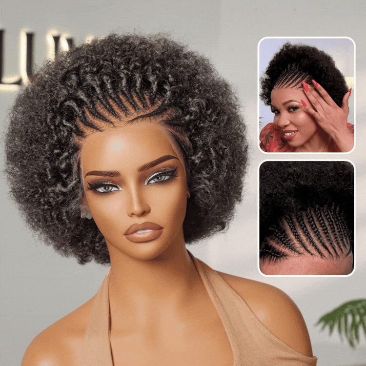Special Price | 170% Density ReadytoGo Knotless Fulani Braids Natural Afro Glueless 13x4 Frontal Lace Wig 100% Human Hair Wig I Pre-cut Lace & Pre-Bleached