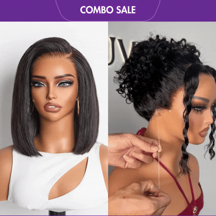 2 For 1 | Glueless 360 Lace Super Natural Hairline Water Wave Free Part Wig+NatureMAX™ Silky Blunt Cut Bob Glueless Ear-to-ear 13x4 HD Lace Front Wig Flexi-Fit Drawstring Cap